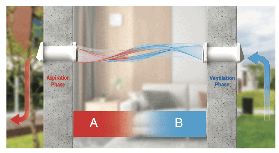 ZEPHYR indeholder en rotorveksler som sikrer høj varmegenvinding. Ved at styre rotationshastigheden på rotoren kan varmegenvinding, bypass og fugtfjernelsespotentiale kontrolleres. Rotorveksleren sikrer også at beboelsen ikke tørres ud, da en lille del af fugten i luften vil blive tilbageført til indblæsningsluften. Kombinationen af sensorer og styring af rotorvelsker gør det muligt at styre ZEPHYR intelligent, så beboerne opnår det bedste indeklima med et minimalt energiforbrug.